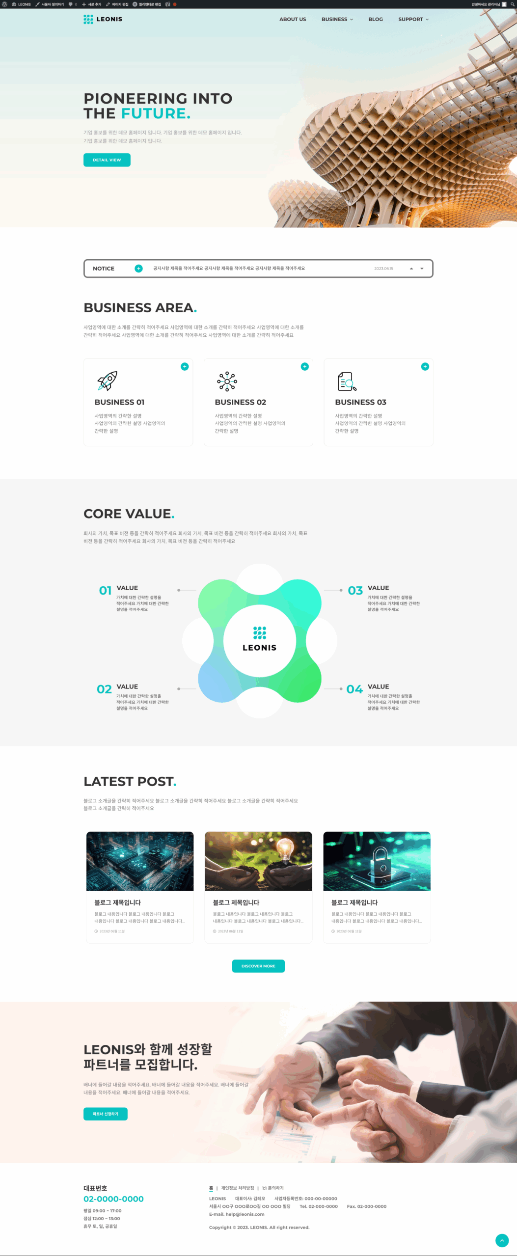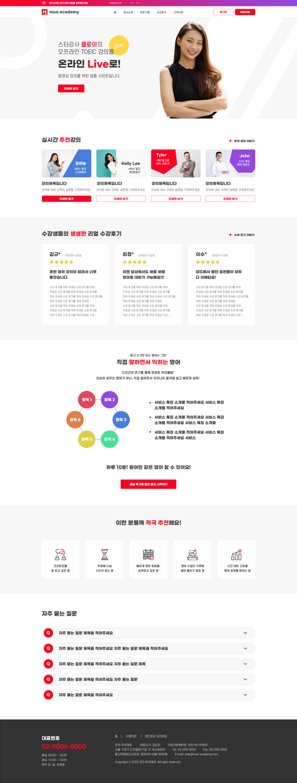 레온은 퍼널모아와 협업하여 수익형 홈페이지(강의 플랫폼, 구독상품 판매 외) 디자인도 지속적으로 출시하고 있습니다.